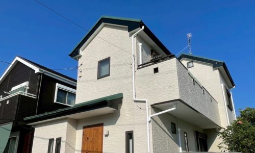 【選定材料】 ・外壁 エスケー化研・水性セラミシリコン ・屋根 大日本塗料・エコクールスマイルSI ・付帯部 日本ペイン…